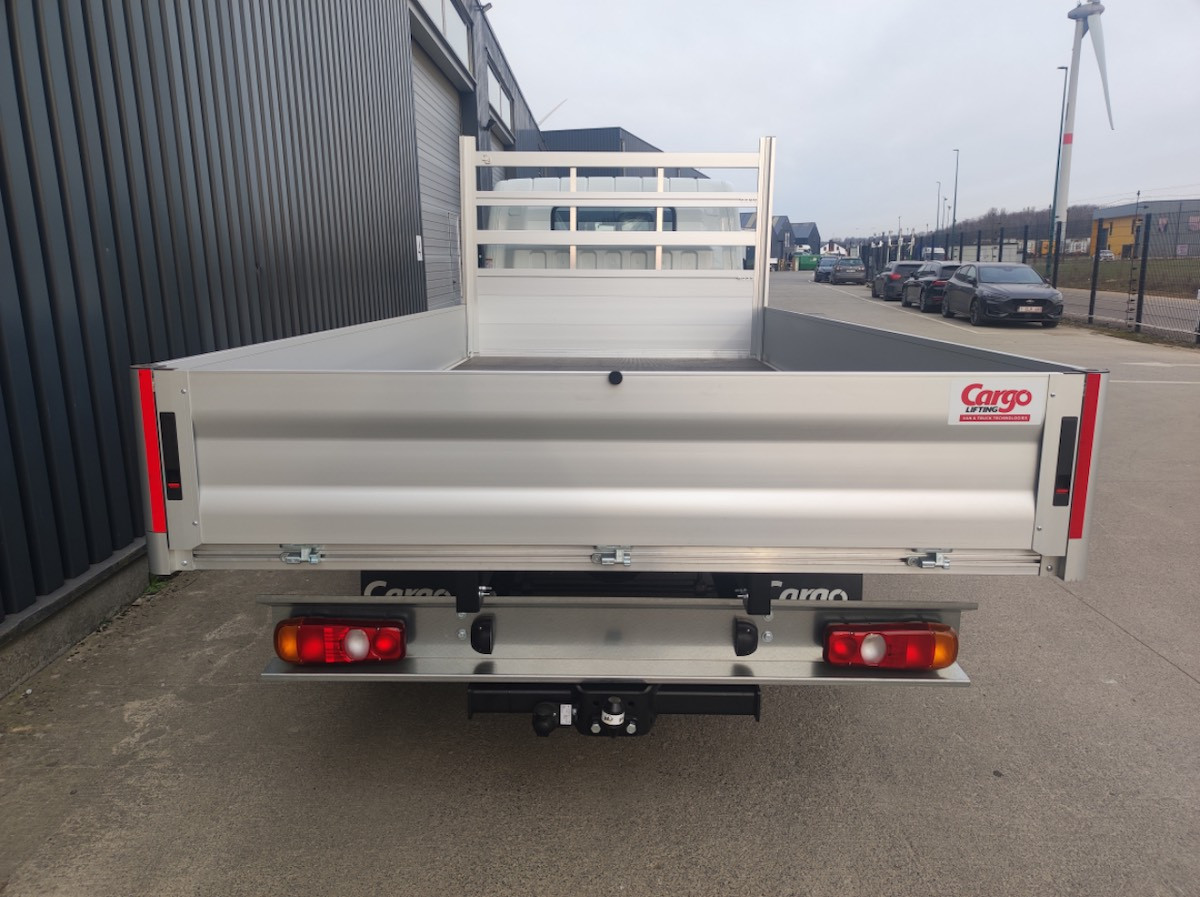 "Aufbau: Cargo Lifting Holzboden - Bodenrahmenhöhe 140mm - Seiten- und Hecktrennwände aus Aluminium Höhe 400mm - Aluminium Stirnwand inkl. Leiterträger - Kleine Trittstufe an der hinteren Stirnwand - 8 Verzurrösen - Radkästen und Schmutzfänger - Seitenkasten aus Edelstahl (800x400x400mm) - Angeschraubte Anhängerkupplung 3.500 kg mit 13-poligem Stecker, mit Stoßstange"